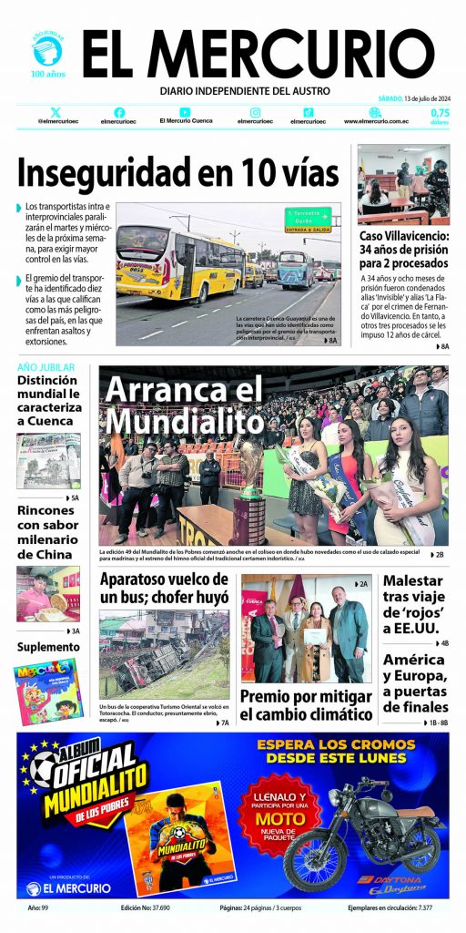 Portada impresa 13 de Julio de 2024