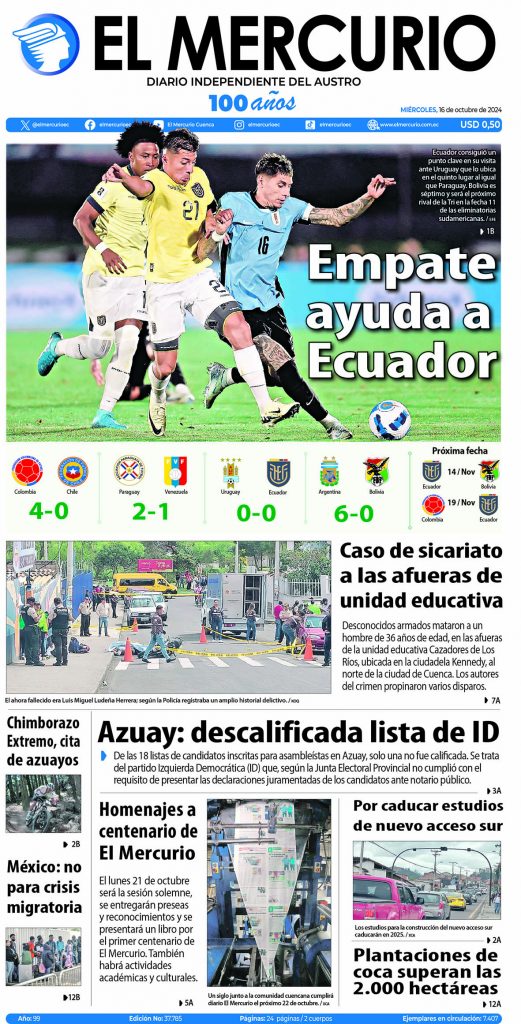Portada impresa del 16 de Octubre 2024