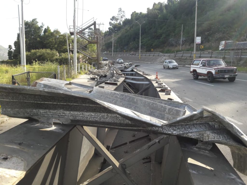 La pesada estructura de 32 metros de longitud cayó a la calzada con la fuerza del choque y obstaculizó el paso en los seis carriles de circulación de esta autopista. Agentes de la Comisión de Tránsito del Ecuador fueron ubicados en varios puntos para distribuir el tránsito a rutas alternas como la Panamericana Norte.