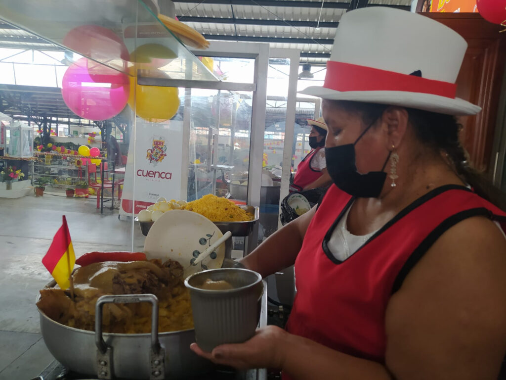 Ana María Tosi, es otra de las vendedoras más antiguas en el mercado 12 de Abril. La comerciante de hornado comenzó a trabajar cuando se construyó este centro de abasto, pues lleva 37 años “sirviendo comida típica para el pueblo”. Tosi recalca que “gracias a Dios” estos días tuvieron gran acogida de clientes y a la vez hizo una invitación para que más personas visiten este tradicional lugar.