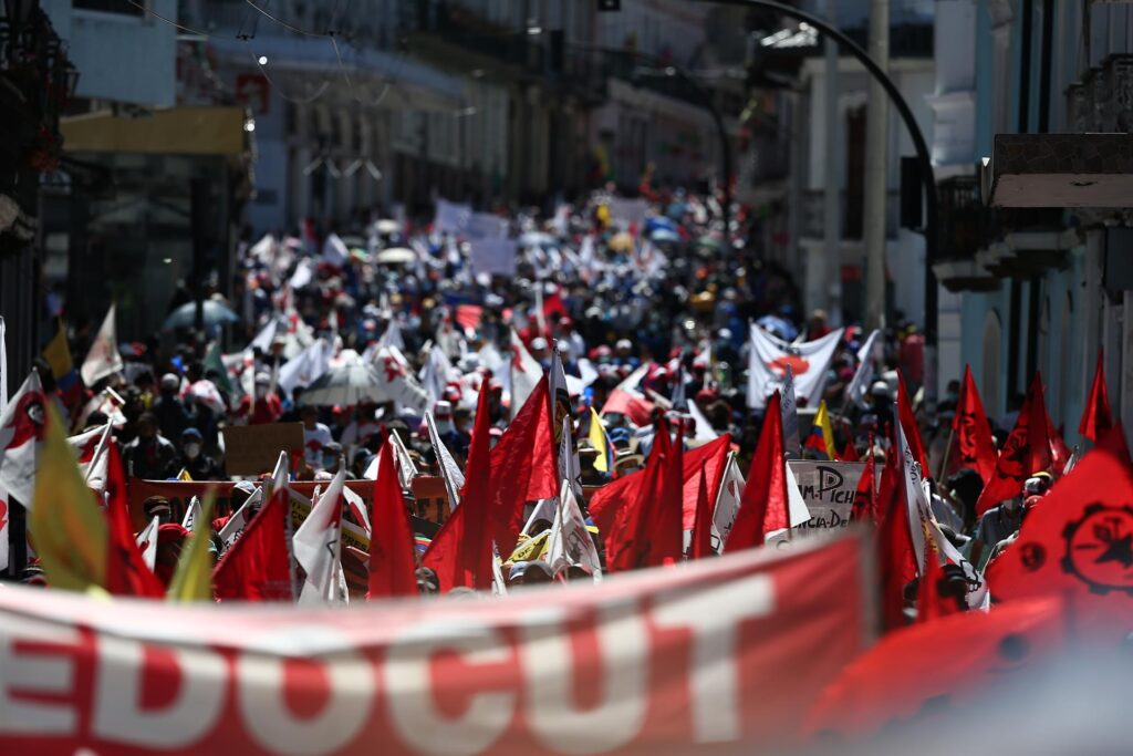 Una masiva marcha de distintos sectores sociales en la capital de Ecuador conjugó este domingo varios reclamos contra el Gobierno de Guillermo Lasso, por la falta de empleo y por la aplicación de lo que consideran políticas neoliberales que afectan a los más pobres.