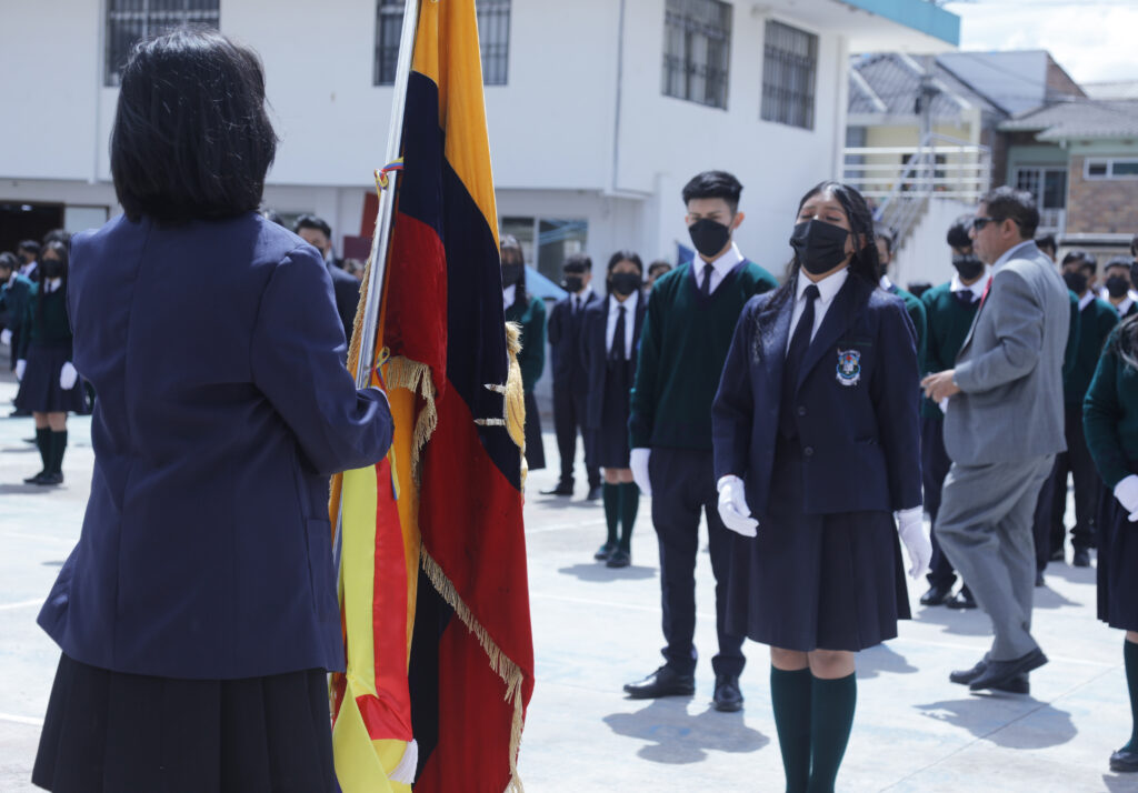 Antes de la pandemia cada estudiante se acercaba a la bandera, se arrodillaba, exclamaba un «Sí juro» y tomaba con sus manos la bandera del Ecuador para besarla.