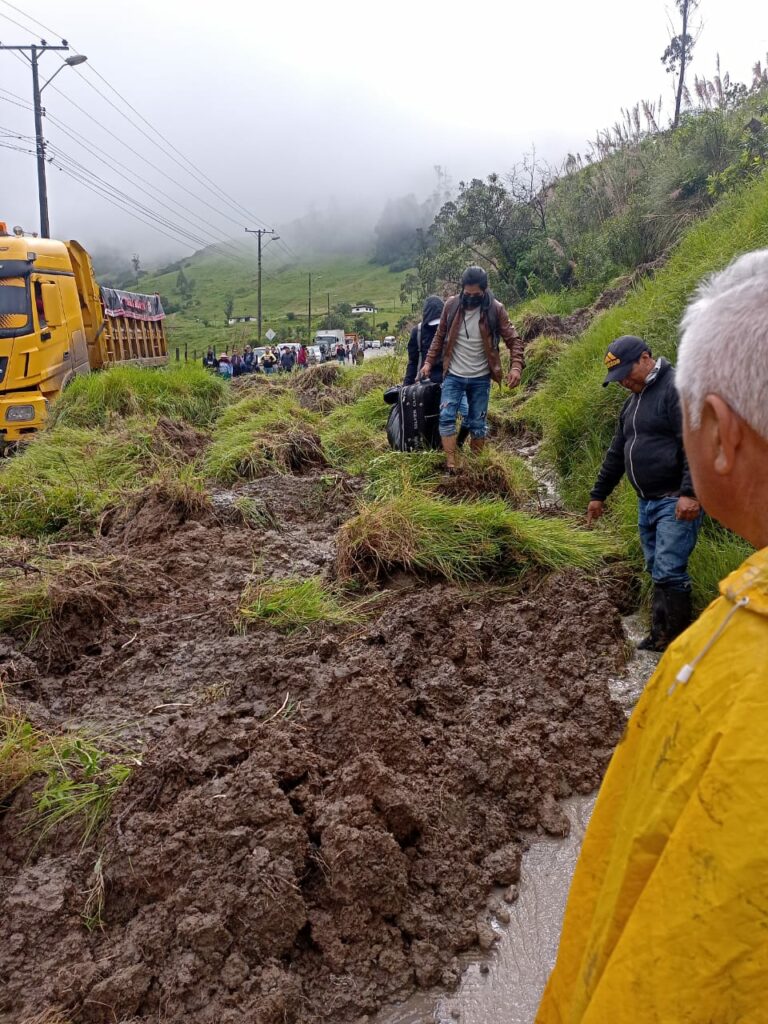 La vía Cuenca – Girón – Pasaje se mantiene bloqueada en tres puntos debido a deslizamientos de tierra y otros daños ocasionados por las fuertes lluvias.