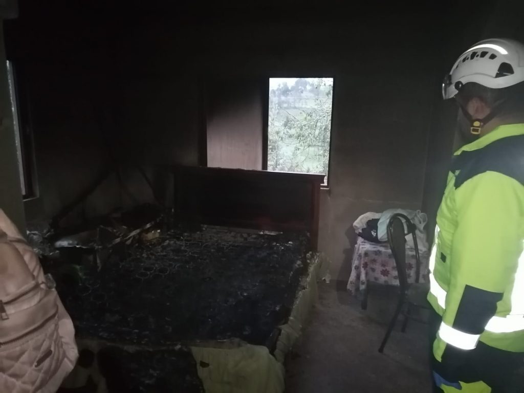 Estado en el que quedó la vivienda afectada por el incendio en Quingeo, Cuenca.