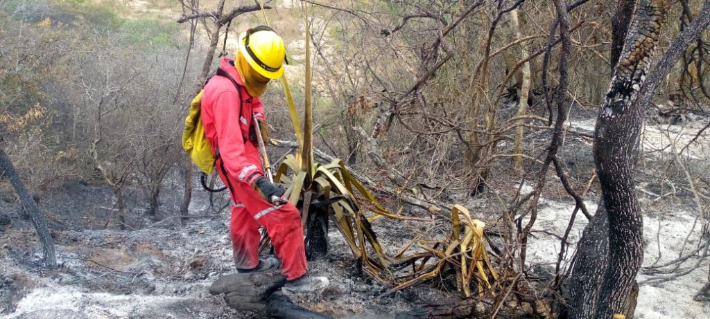 De acuerdo con el reporte del personal del Bomberos Oña, hasta el mediodía el incendio se encuentra controlado y realizan labores de enfriamiento de bordes y liquidación de focos internos para evitar que el fuego se reactive debido a los fuertes vientos.