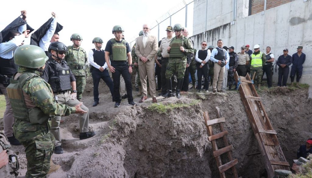 En un operativo, en el que estuvo acompañado por policías y militares, el Mandatario verificó el cierre de un túnel en la cárcel de Turi, que había sido construido por las personas privadas de libertad, PPL, para una eventual fuga.