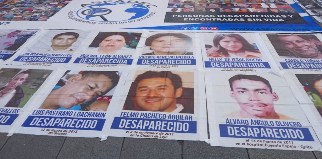 “Si sumamos el 2023 y el 2024, son más de 1.500 personas que desaparecieron en el país y cuyos casos se siguen investigando, exigimos al Estado ecuatoriano que nos entreguen a nuestros desaparecidos”, afirmó Lidia Rueda, coordinadora de Asfadec.