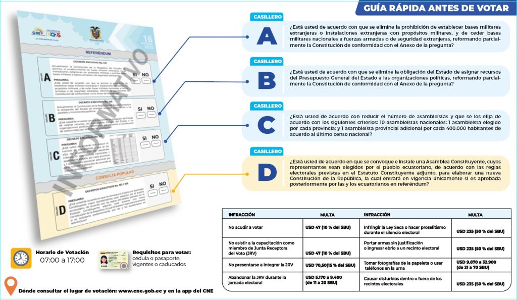 Sí. Tenemos un espacio denominado Voto Informado, que se desarrolla en coordinación con universidades para explicar a la ciudadanía en qué consisten las tres preguntas de enmienda constitucional y la de consulta popular. Es fundamental que cada elector entienda qué propone cada una y vote con claridad sobre lo que quiere para el país.