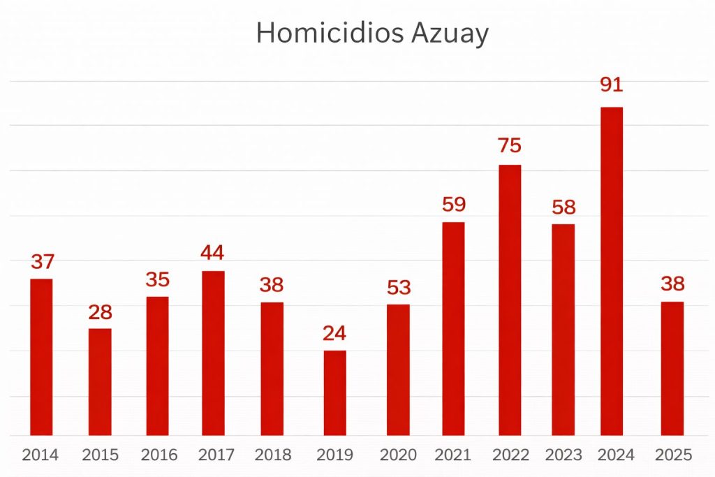 Aunque las tasas de homicidio son menores en provincias como Azuay, la presencia de bandas criminales es una amenaza latente que puede intensificarse si no se fortalece la inteligencia y la coordinación entre las instituciones de seguridad.
