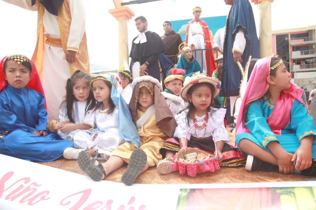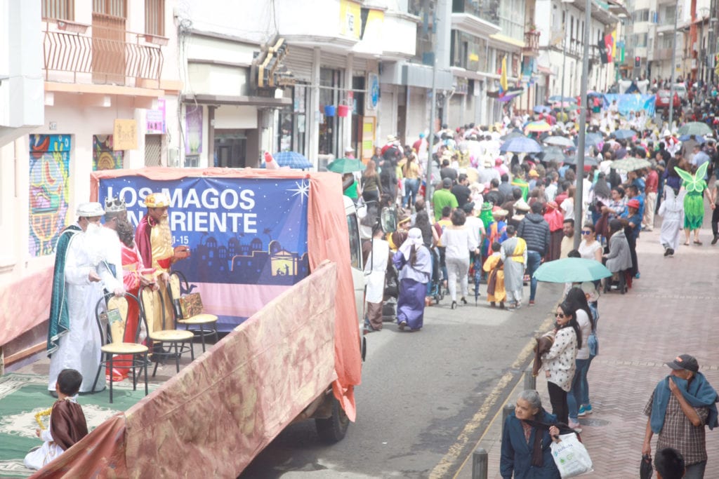 Fue un domingo diferente el de ayer, para la capital del Cañar, pues desde tempranas horas, miles de personas revestidas de ángeles, pastorcitos, reyes magos, entre otros personajes de Navidad, caminaron apresuradamente hacia la Catedral y luego al
