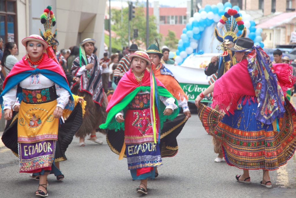 En medio de las delegaciones resaltaron los grupos de danza que revestidos con trajes típicos del Austro, bailaron Sanjuanitos, albazos, entre otros géneros del pentagrama nacional.