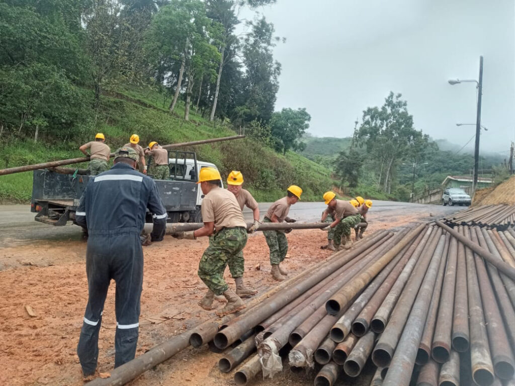 El trabajo está a cargo de personal de la Compañía de Ingenieros N.º 1 Quitumbe y del Cuerpo de Ingenieros del Ejército, que fueron movilizados a esta zona para apoyar en la atención de esta emergencia.