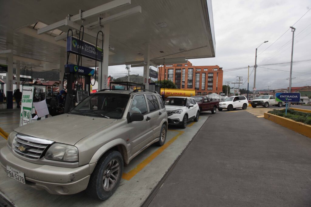 En las gasolineras de Cuenca se evidenciaron ayer largas filas de vehículos. Sus propietarios trataban de comprar la gasolina ecopaís antes de que se agote todo el suministro.