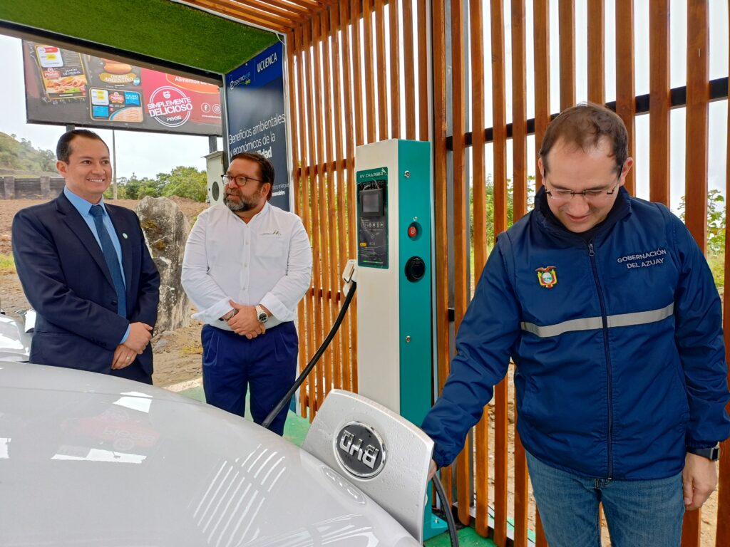 – Autoridades de Azuay y Cañar participaron ayer en el acto de inauguración de la ruta de las electrolineras en La Troncal. Previamente recorrieron las estaciones de carga en carros eléctricos.