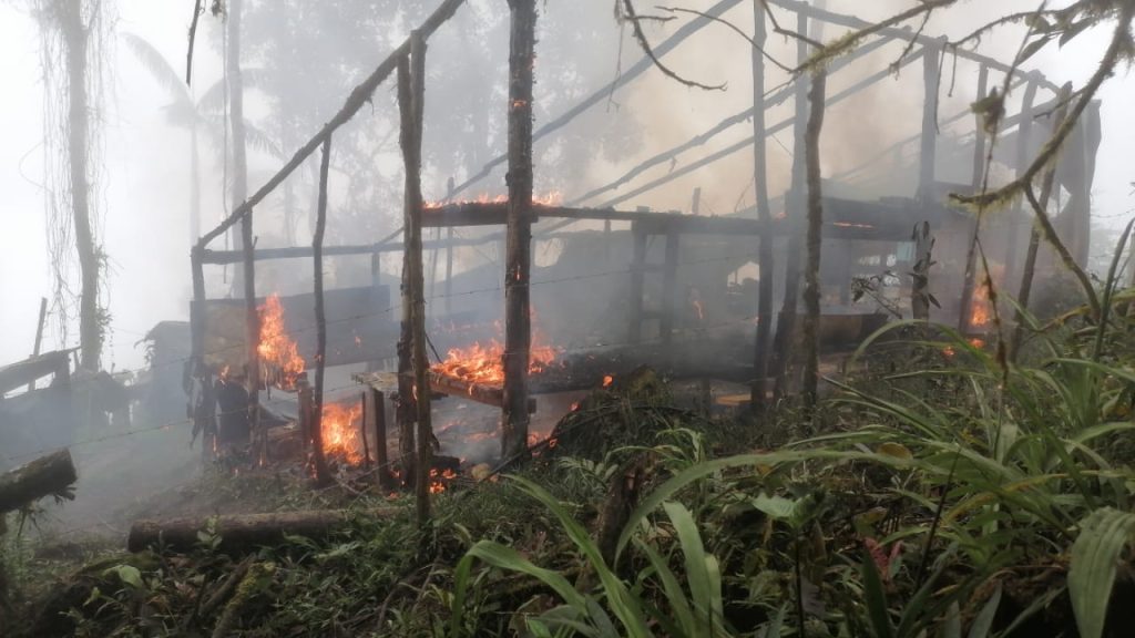 Personal militar especializado procedió a destruir los artefactos fulminantes en el lugar; además, quemaron algunos campamentos de mineros ilegales para evitar que regresen a la zona.