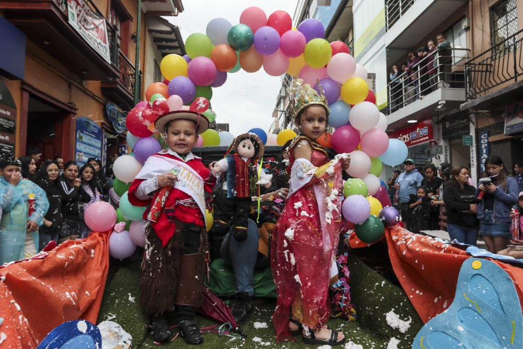 La calle Bolívar fue ayer el escenario del tradicional desfile del Taita Carnaval organizado por la Unidad Educativa Juan Bautista Vásquez, una celebración que se mantiene viva desde hace más de dos décadas en la capital provincial del Cañar.