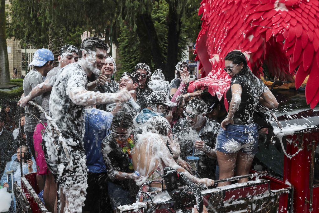 Al festejo también se sumaron establecimientos educativos de otros cantones que no quisieron perderse ni un solo instante del evento. Es el caso de la Unidad Educativa San Sebastián, del cantón Déleg, que presentó un carro alegórico con una imagen de más de dos metros de altura del Taita Carnaval.