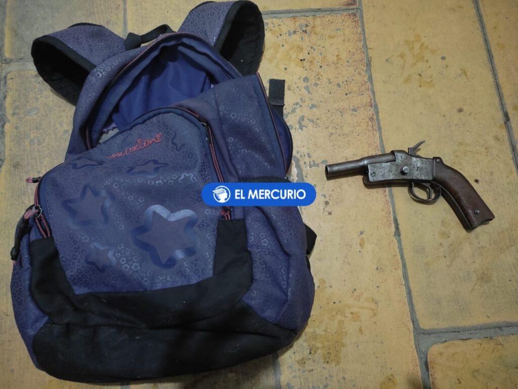Los uniformados desarrollaron un operativo y localizaron al implicado en la calle Luis Cordero. Durante una inspección de una mochila que llevaba el implicado, los policías encontraron un arma de fuego.