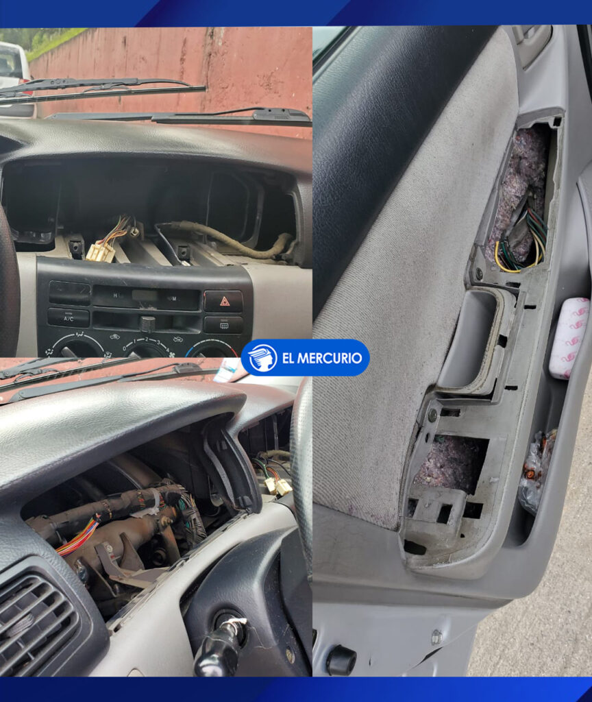 Los delincuentes se apoderaron de los accesorios del tablero, la computadora automotriz, los mandos de los elevadores eléctricos de las ventanas y otras partes del automotor; además robaron documentos y pertenencias que estaban en el vehículo.