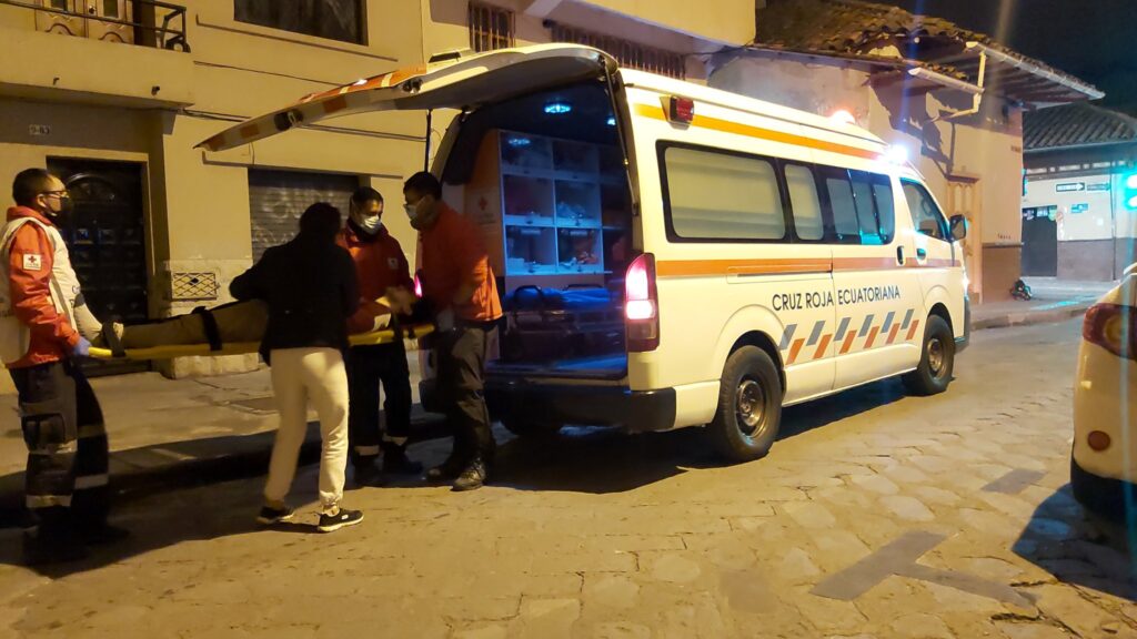 La víctima que quedó con múltiples golpes sobre el piso, se reincorporó con dificultad y llegó a su vivienda donde pidió ayuda a sus allegados. Los familiares llamaron al Servicio Integrado de Seguridad (SIS) ECU 911.