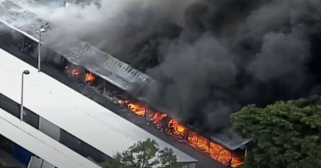 Las imágenes de las televisoras muestran vistas aéreas del lugar, que cuenta con 200 locales y está ubicado en el noroeste del condado Miami-Dade, envuelto en llamas y con varios carros de bomberos cerca.