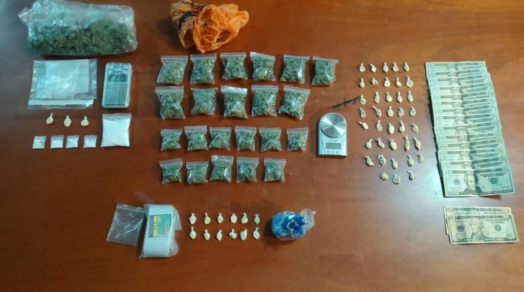 Como parte de las evidencias, la Policía decomisó varias envolturas con droga, dinero y otros objetos.