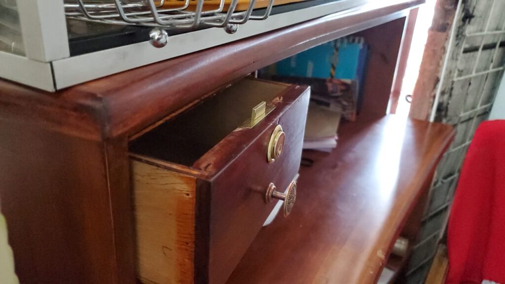 Los ladrones rebuscaron en los cajones de muebles y en las vitrinas para apoderarse de dinero y objetos de valor.
