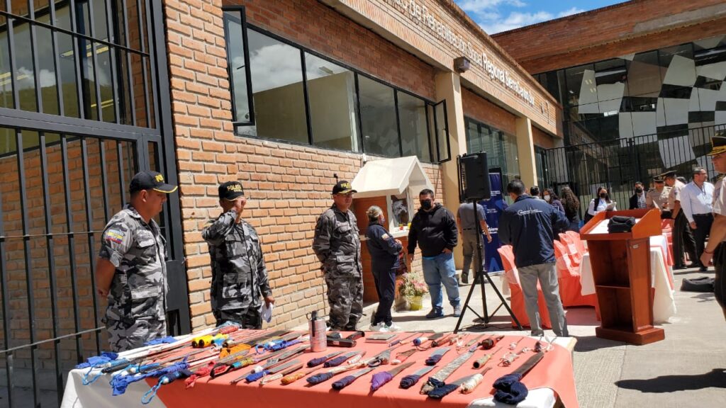 Cuenca.- Hubo entrega voluntaria de armas y la firma de un acuerdo de paz, por parte de las personas privadas de la libertad (PPL) del Centro de Privación de Libertad (CPL) Azuay N°1, en coordinación con las autoridades del Servicio Nacional de Atención Integral a Personas Adultas Privadas de la Libertad y a Adolescentes Infractores (SNAI).