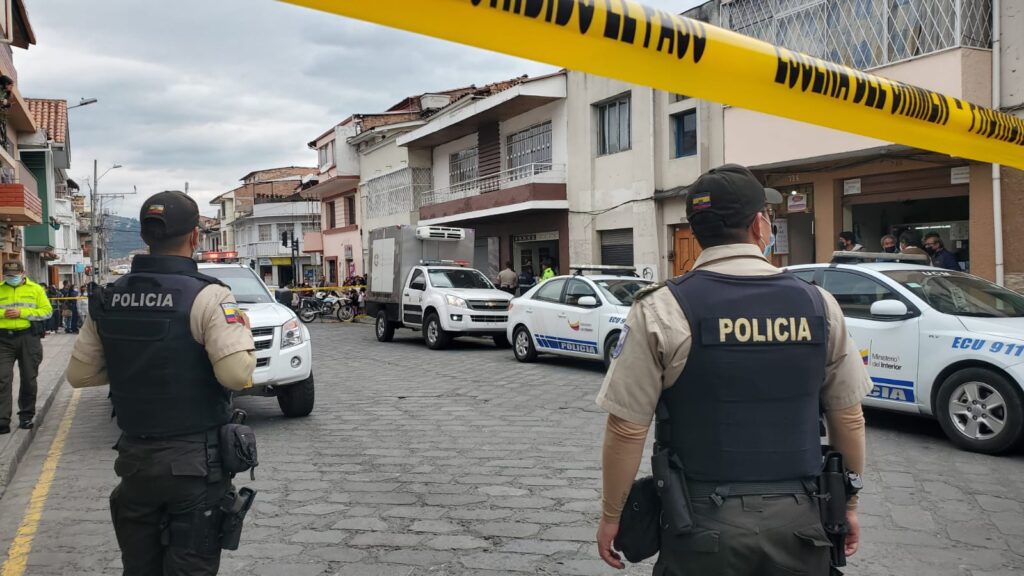 Tres miembros de la Policía Nacional fueron aprehendidos para investigaciones por la muerte violenta registrada la mañana de este jueves, 25 de agosto de 2022, en las calles Manuel Vega y Presidente Córdova, en el Centro Histórico de Cuenca.