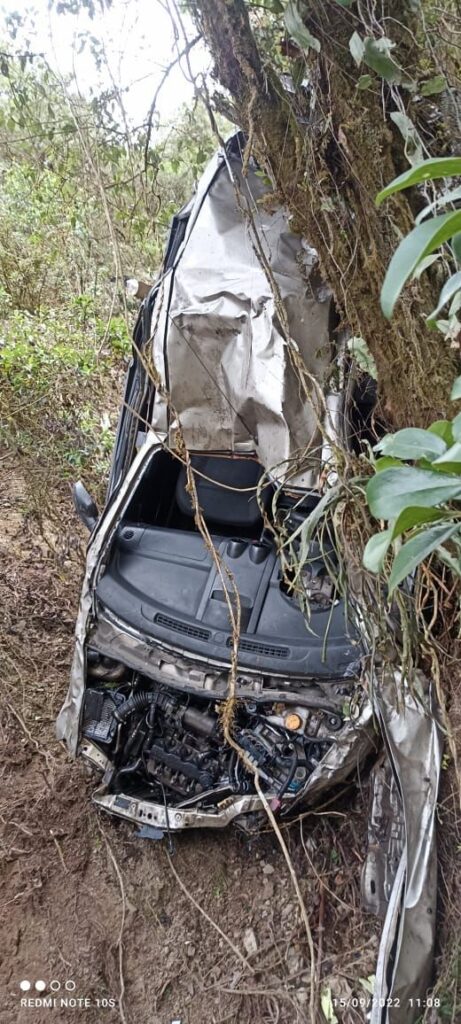El siniestro se registró aproximadamente a las 09:30 de este 15 de septiembre, cuando el vehículo perdió pista y cayó a un barranco, quedando destrozado.