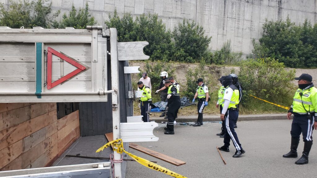 Cuenca.- Una persona murió y otra fue detenida tras el vuelco de un camión que poco antes fue robado en la parroquia Baños. El hecho sucedió al mediodía de este martes 27 de septiembre. Mientras era conducido por los desconocidos, el camión impactó un borde de concreto, perdió la estabilidad y se volcó sobre calzada de la vía, en las afueras de la cárcel de Turi. En el descontrolado trayecto, un pasajero del camión murió aplastado y arrastrado por la cabina del automotor, mientras el conductor resultó ileso y fue detenido.