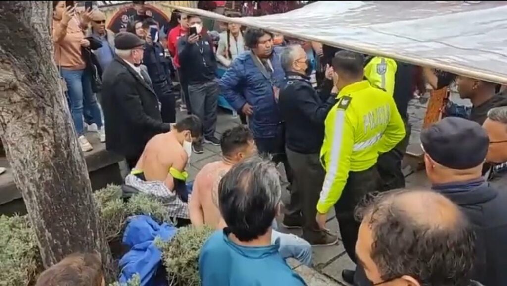 Sin embargo, una multitud mostró la indignación y propinó golpes a los detenidos, además de utilizar correas para golpear a los capturados.