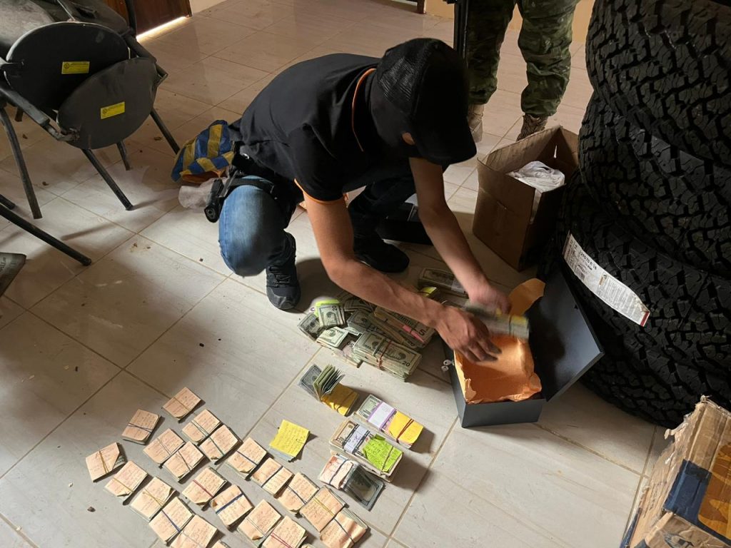 Los agentes allanaron un domicilio en el mismo sector donde incautaron 153.710 dólares, los cuales no pudieron ser justificados por su propietario, Ever Vicente C.