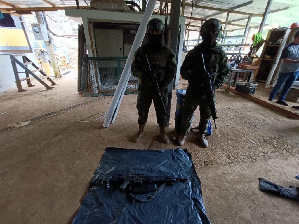 Militares decomisaron armas y municiones en una empresa minera del cantón Camilo Ponce Enríquez.