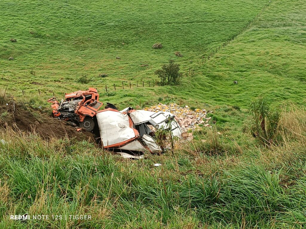 Según registros de Bomberos Biblián, el camión se precipitó aproximadamente 40 metros, quedando totalmente destruido.