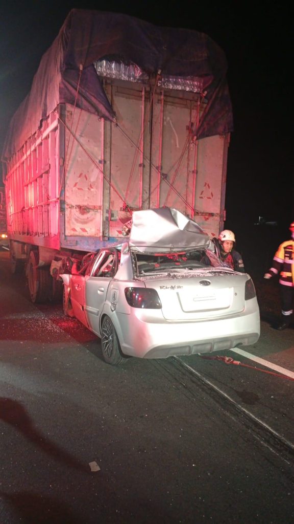 El vehículo en el que se movilizaban, un Kia Río, plomo, de placas XBA-5158, se impacto en la parte posterior de un camión marca Dayun, de placa AAA-5939, de color blanco.