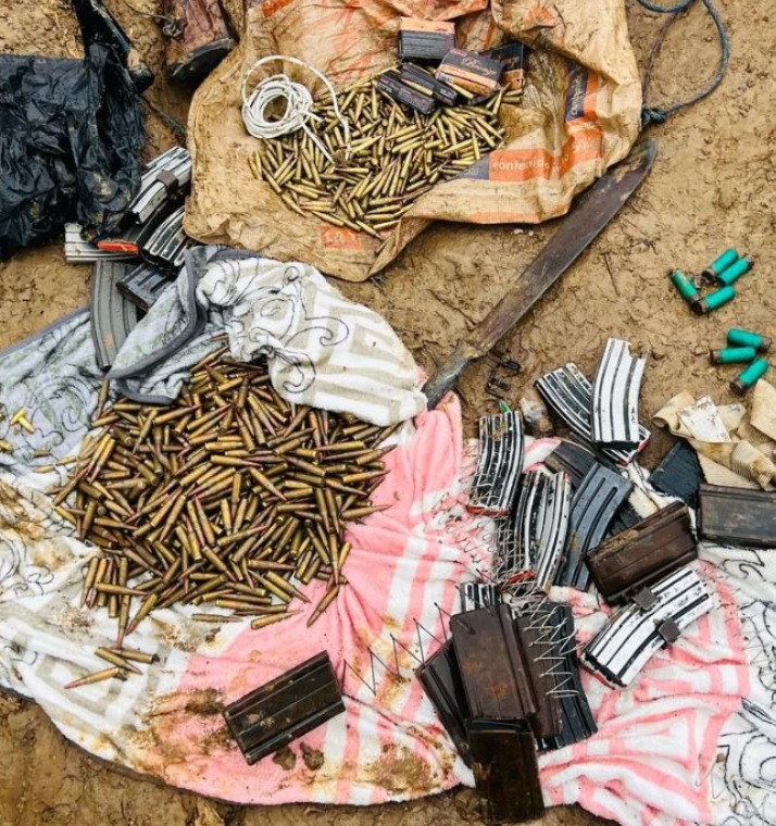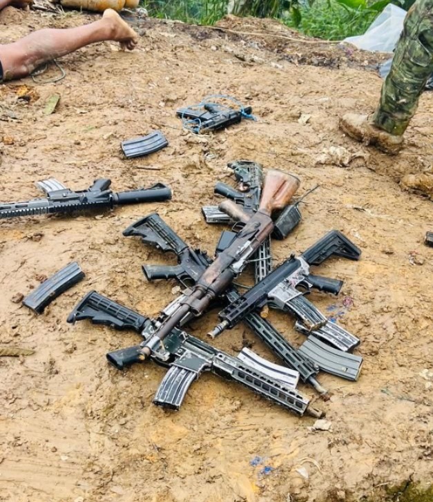 Asimismo, el personal militar confiscó alimentadoras de la subametralladora y de la pistola, municiones, tres radios de comunicación, junto con otros elementos empleados en actividades de minería ilegal.
