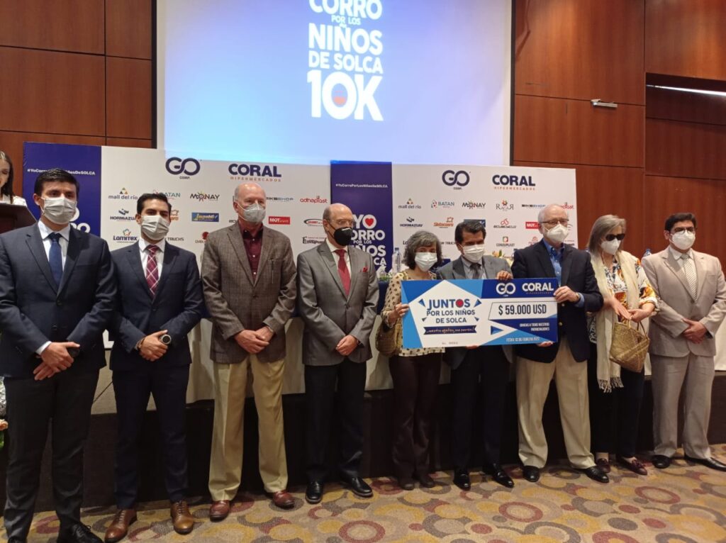 El Grupo Empresarial Ortiz hizo la entrega de USD 59.000 al área de pediatría de SOLCA, valor recaudado en la décimo quinta edición de la carrera atlética “Yo Corro por los Niños de Solca 10k GO”, que se cumplió el pasado 5 de diciembre de 2021.