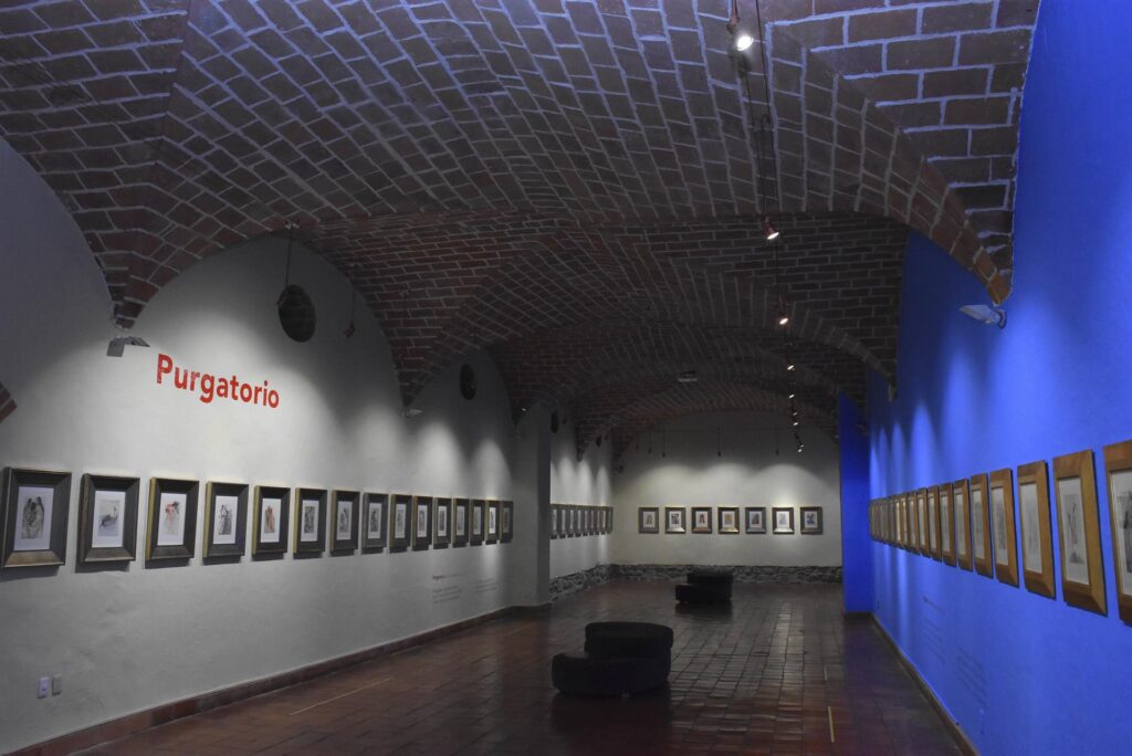 Así, la sala Patio de Cristal exhibe las xilografías correspondientes al Infierno con un fondo rojo intenso, mientras que el ambiente Diez de Medina se pintó de amarillo y celeste en partes iguales para acoger los cuadros del Purgatorio y el Paraíso, respectivamente.