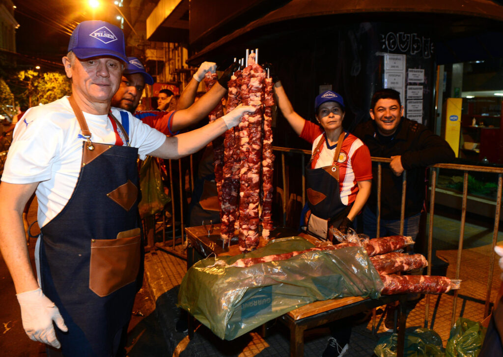 «El asadito más largo del mundo», como fue bautizada la actividad, atrajo a centenares de personas al centro histórico de Asunción, la capital paraguaya, que se vistió de luces y fue atravesado por asadores instalados en línea para conseguir la hazaña.