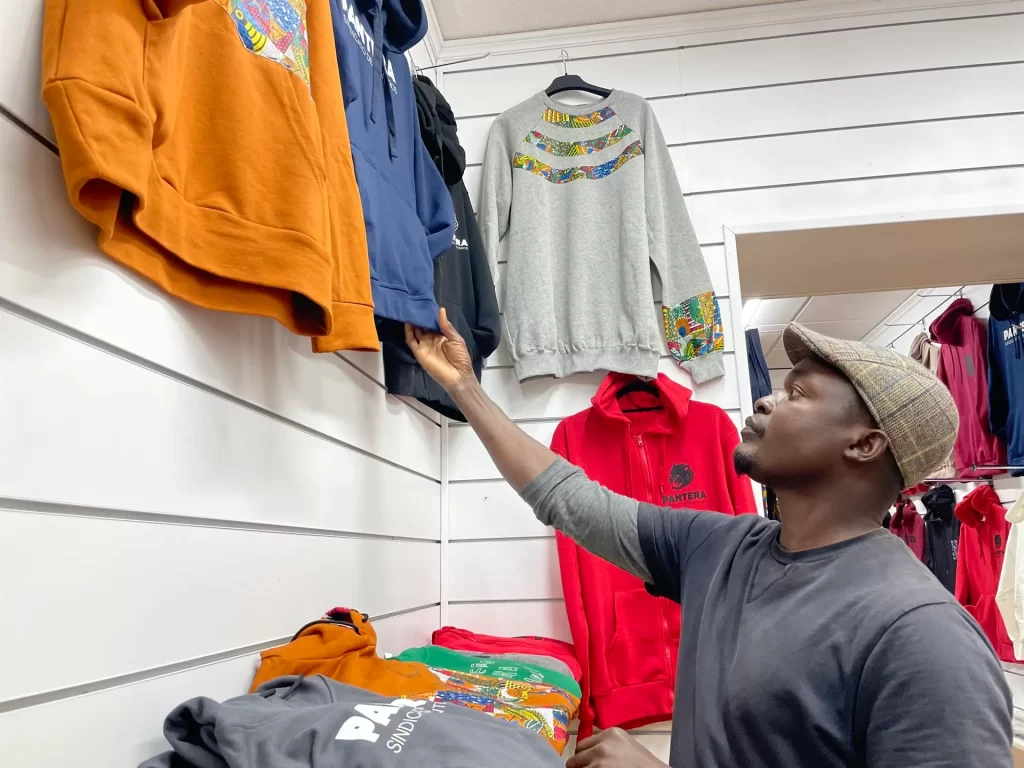Situada en el centro de Madrid, en el multicultural barrio de Lavapiés, la tienda Pantera recibe un constante goteo de clientes, vecinos del barrio que se acercan a apoyar o curiosos atraídos por las coloridas prendas que también recuerdan a tradicionales telas africanas.