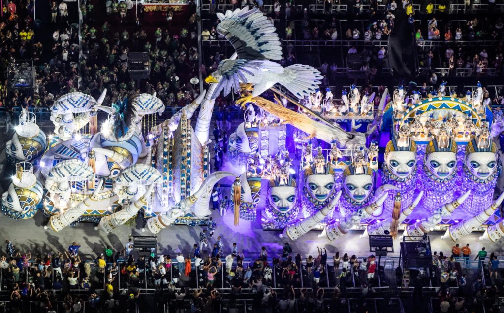 El público que asistió a la pasarela carioca también se unió al clamor indígena y a la lucha de los pueblos nativos de la Amazonía brasileña en la historia que Unidos da Tijuca llevó al sambódromo, una presentación que rindió un tributo visual a Ucrania exhibiendo el azul y amarillo de su bandera en la carroza inicial con la que presentó la trama del desfile.