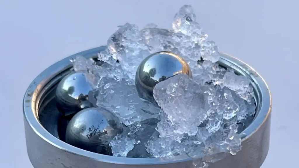 Para lograr el MDA, el equipo usó un proceso de fresado del hielo por medio de bolas de acero en un recipiente enfriado a unos -200 grados.