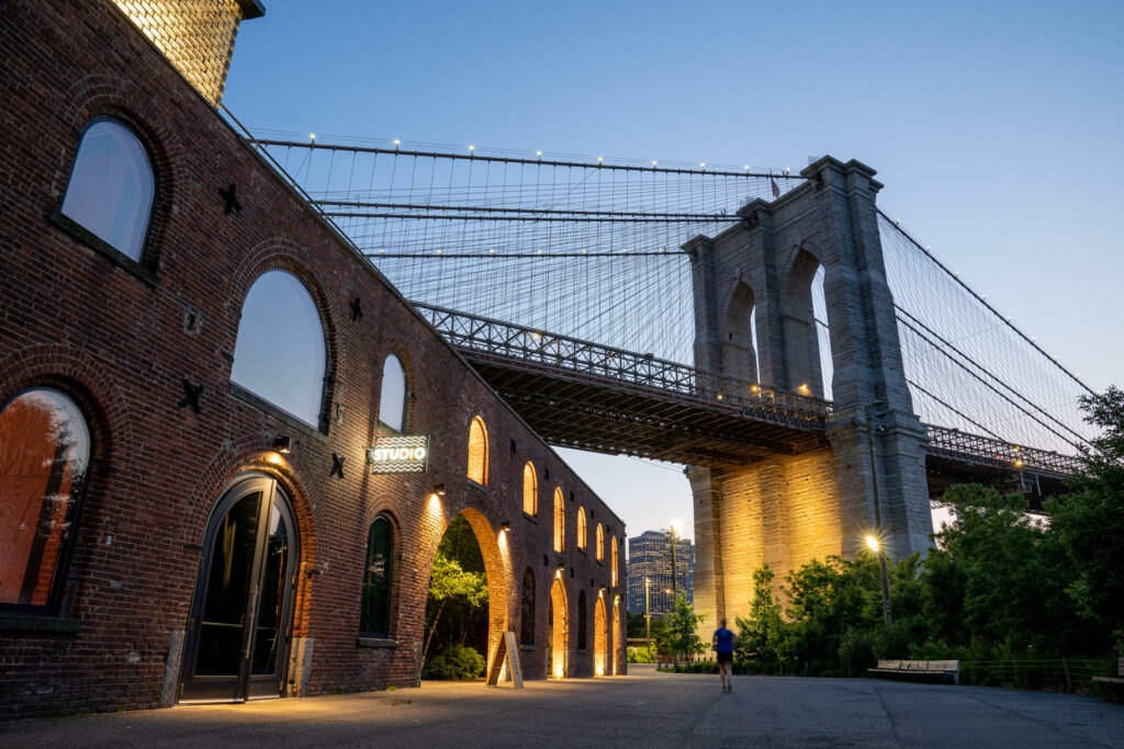 Del lado de Brooklyn se llega a la popular zona moderna de Dumbo, con sus cafés y restaurantes rodeados de árboles, y, de noche, desde cualquier punto de allí, las luces de las torres de Manhattan son otro gran espectáculo.
