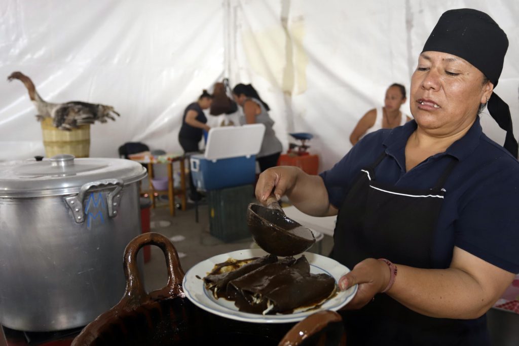 Cocineras mexicanas honran el tradicional mole poblano con feria