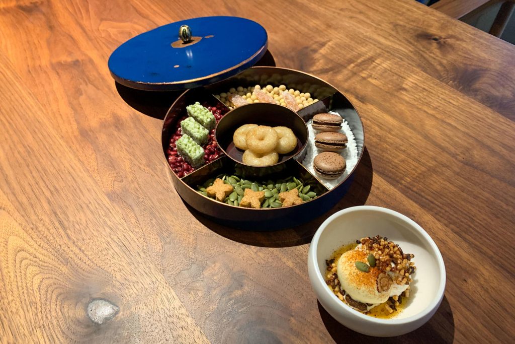 Tras once platos en once lugares con sus respectivos maridajes, la travesía finaliza con un postre «surrealista», que pinta la mesa como un lienzo con distintos sabores frutales.