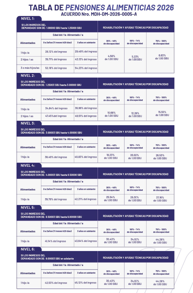 Tras el incremento del Salario Básico Unificado (SBU) en Ecuador, los valores de las pensiones alimenticias se actualizaron. Las personas obligadas a cumplir con estos pagos deben informarse sobre los nuevos montos, ya que el incumplimiento puede derivar en multas e incluso en órdenes de arresto. (I)