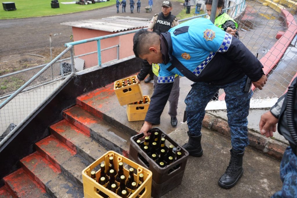 Personal de la Guardia Ciudadana decomisó unas 720 cervezas en el interior del Estadio Alejandro Serrano Aguilar, previo al encuentro por Copa Sudamericana previsto entre el Deportivo Cuenca y el Santos FC.